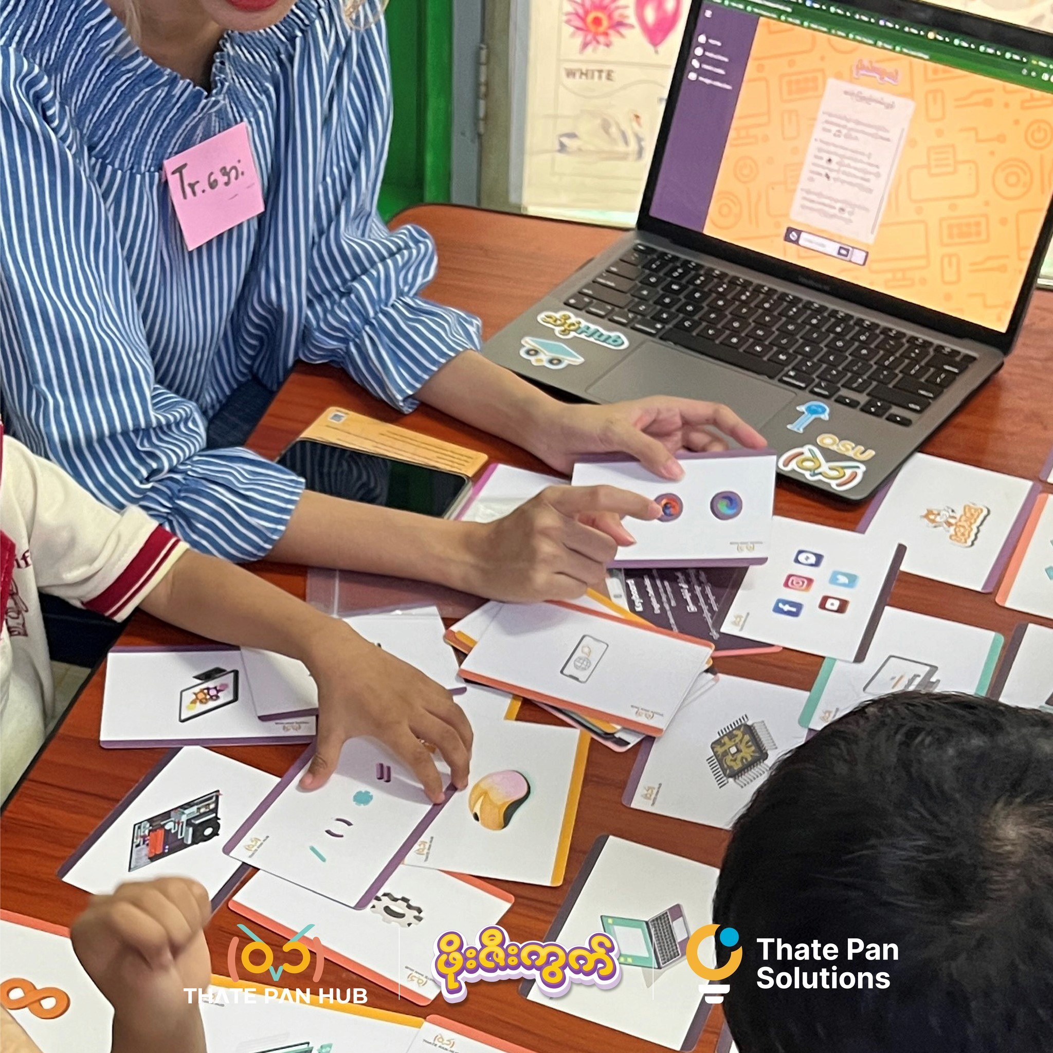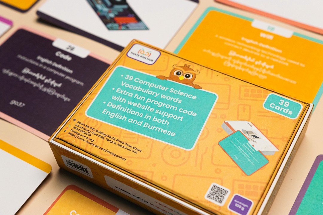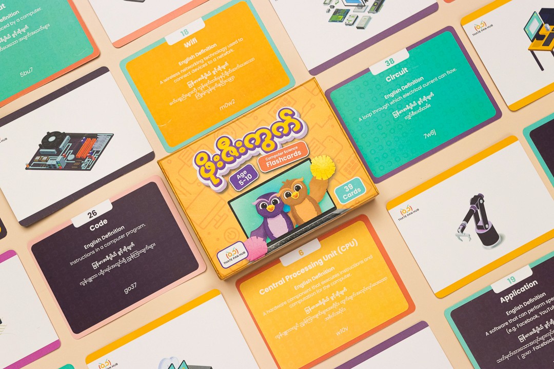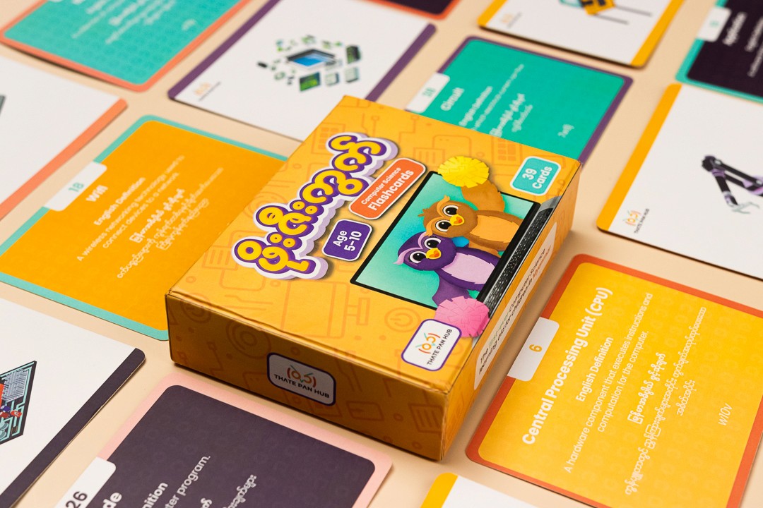 Phoe Zee Kwat is a set of educational flashcards designed for Thate Pan Hub, a Myanmar-based NGO that supports local education and youth empowerment. The goal was to create a playful, practical, and culturally grounded learning tool that helps children improve their digital literacy and memory skills while making studying feel more engaging.